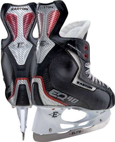 Easton Synergy EQ40 Ice Skates [SENIOR] Overviews: * A more flexible hybrid of fit and performance * Texalium glass composite launch zones: side wing, tendon, and heel * White felt tongue with flexible lace-bite protection * Light, stiff composite outsole with Dry Flow * Forward Flex design on junior sizes 1-3.5
