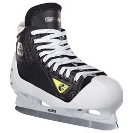 Designed for goalies looking for a skate that matches their advanced skills. The moderately stiff profile comes from a full microfibre construction and Full-Flex tendon and lateral support stiffeners. This matrix provides total stability while accommodating the rapid and extreme shifts in direction and angle a goalie has to make. The Thermolam construction system allows heat molding of the boot and the GRILAMID toe cap provides extra durability and protection against projectiles. For additional comfort and fit support Graf have incorporated the new ready-to-fit footbed with SIDAS Technology and the AirNet lining featuring the evaFIT moisture management system to keep you cool under extreme pressure.These Graf skates are also available in kids' sizes: Graf Supra 750 Pro Goaler-Junior Skates (sizes 3.5-5.5)