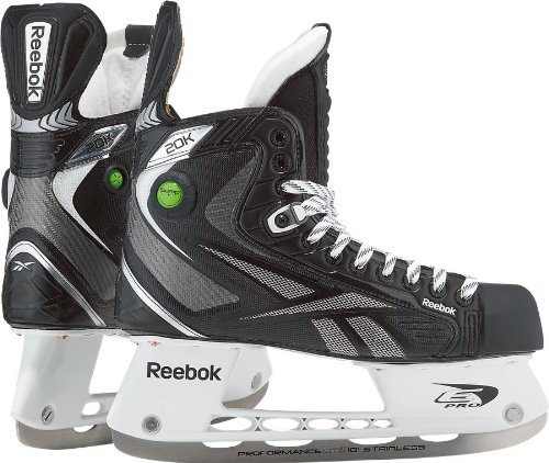 Reebok 20K Pump Ice Skates [JUNIOR] Overviews: Reebok's new 20K Ice Skates are built with Pro line craftsmanship. The new Dynamic Support System solidifies the skate and controls flexion while working with the reinforced composite quarter package to maximize the energy transmission in every stride. Continuing to built on the Pump franchise, the 20K skates provide the best out of the box fit, customization and performance. The Dynamic Support System, DSS optimizes flexibility and stiffness to effectively maximize the transmission of human power. The Spinal Zone wrapped composite fibers oriented at 90o and 0o, supports and locks the heel in place. Composite fibers at 45o angle, enhances the flexion profile of the skates. Power transmission from stride to ice is accomplished via a reinforced and structurally stronger metal mesh on the side boot. This increases power transmission while also providing additional protection to the outside of the foot. The Pump continues to be refined and implemented to provide the most accurate fit available. By eliminating natural gaps around the ankle, a more snug and custom fit is achieved. This tighter fit also prevents heel lift. The tendon guard, or flexion guard, has been engineered to provide a greater range fo motion per stride. Likewise, a new Pro skate tongue is both more flexible and more protective. * The Pump provides a custom fit around your ankle by eliminating dead space * New quarter package with reinforced zones provides improved ankle and foot support * Dual zone liner - one for moisture control, one for gripping the foot in place * Hybrid tongue with Pro felt and EPP foam combination offers a best in class comfort level * Carbon fiber outsole gives you a reactive feel on the ice
